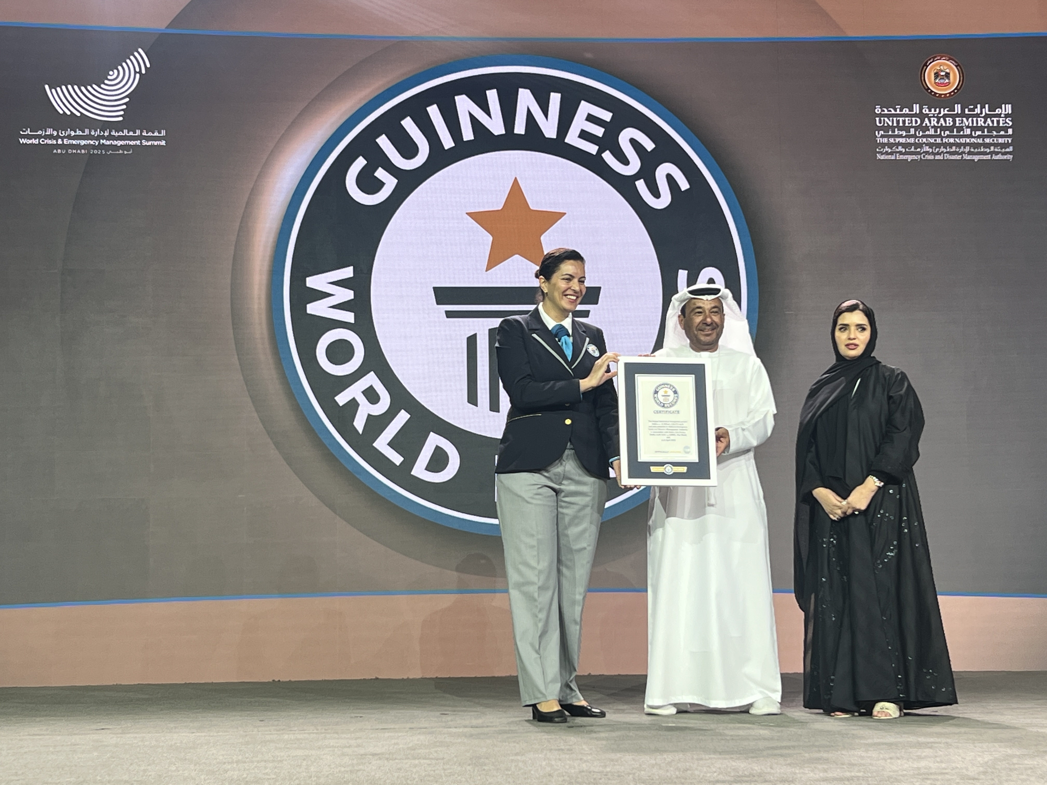 في إنجاز جديد يعكس التقدم التكنولوجي والإبداع في مجال إدارة الأزمات، سجلت الهيئة الوطنية لإدارة الطوارئ والأزمات والكوارث في دولة الإمارات العربية المتحدة رقمًا قياسيًا عالميًا لأكبر شاشة تفاعلية شفافة، بمساحة بلغت 12.56 مترًا مربعًا (135.27 قدمًا مربعًا). تم تحقيق هذا الإنجاز المتميز خلال قمة إدارة الأزمات والكوارث العالمية التي أقيمت في مركز أبوظبي الوطني للمعارض (أدنيك) في أبريل 2025.