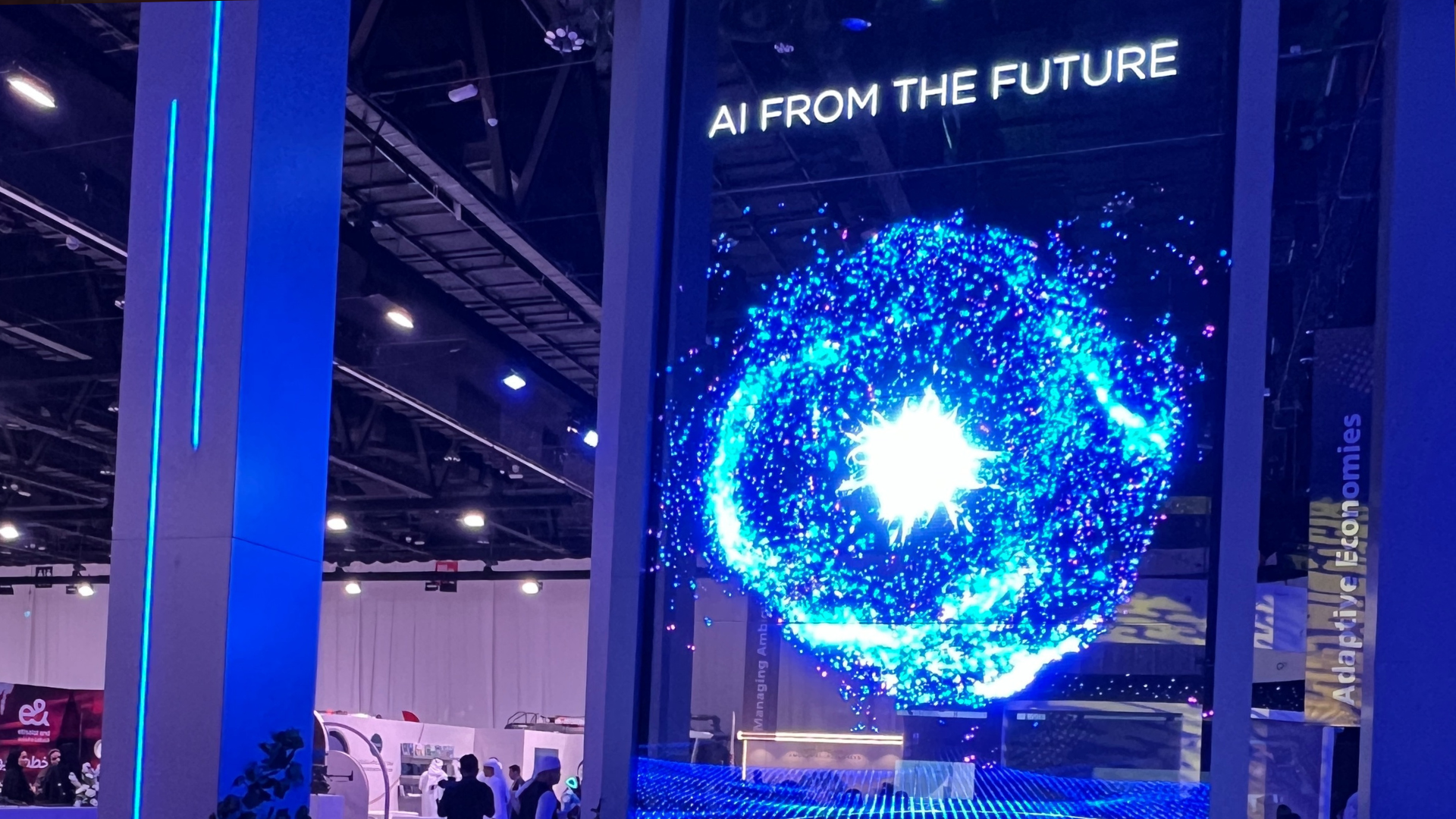 تميزت هذه المبادرة باستخدام أحدث التقنيات التفاعلية التي دمجت بين رواية القصص والذكاء الاصطناعي لخلق تجربة غامرة وفريدة من نوعها. حيث أتاحت الشاشة للحضور التفاعل المباشر مع محتواها عبر الإيماءات اليدوية، بفضل مستشعرات تم تهيئتها خصيصاً لالتقاط الحركات وتحويلها إلى محتوى حي يولّده الذكاء الاصطناعي في الوقت الفعلي.